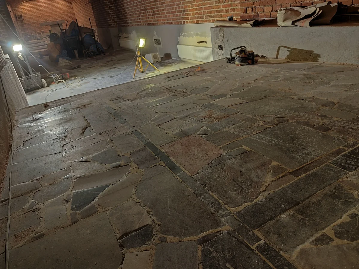 - Niwelacja klawiszowania - szlif agresywny posadzki na mokro niweluje uskoki między płytkami
